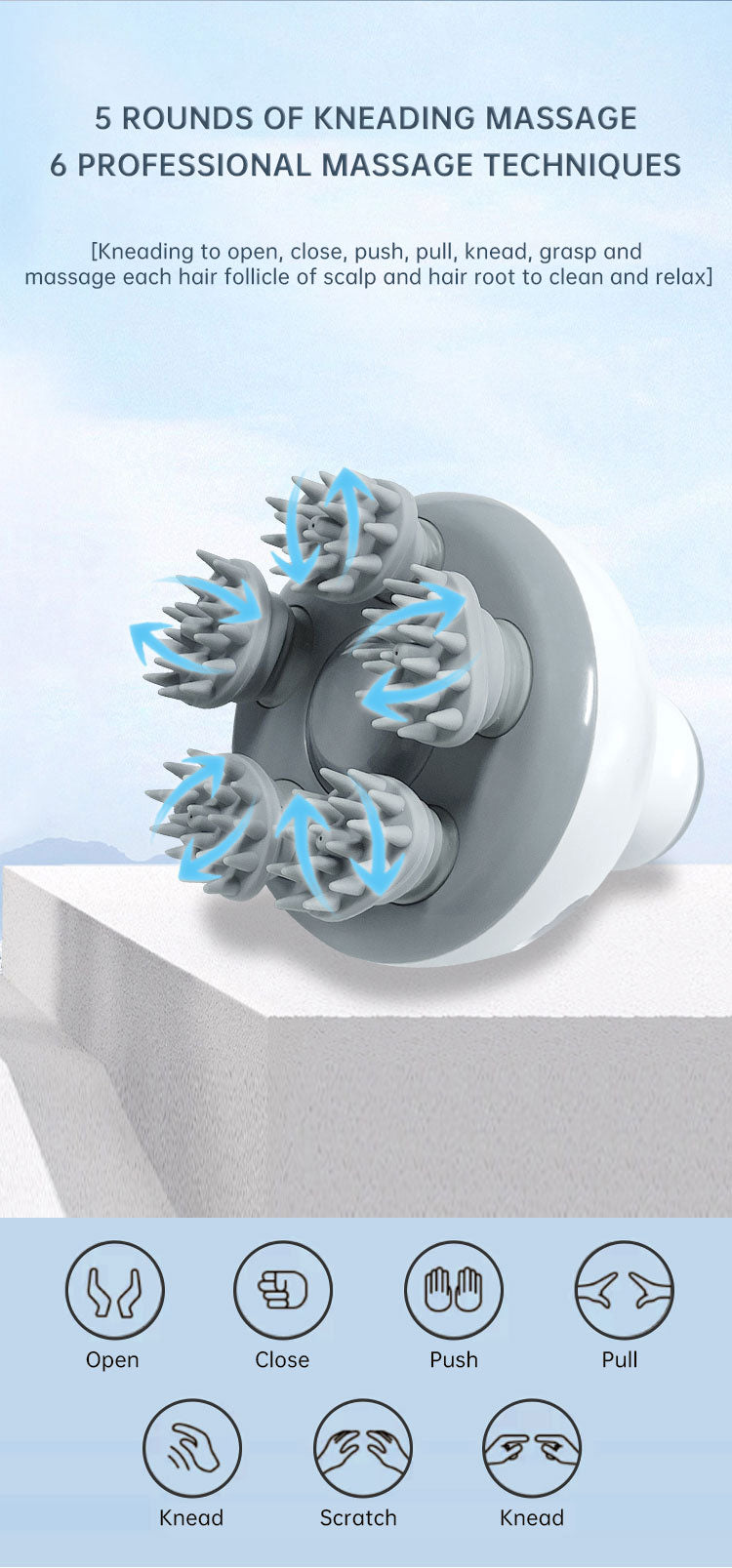 The Auria DeepScalp™ transforms scalp care into a moment of indulgent wellness. Designed to soothe, refresh, and invigorate, this device elevates daily self-care into a calming, intentional ritual. Its ergonomic design fits comfortably in your hand, allowing precise and effortless movement across the scalp while promoting a sense of balance and relaxation.
