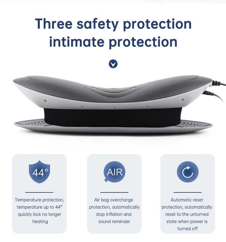 Select Your Mode: Choose from the vibration and airbag traction modes. You can adjust the intensity and rhythm of the massage to suit your comfort level. The device will gently start to massage and stretch your waist and lower back.